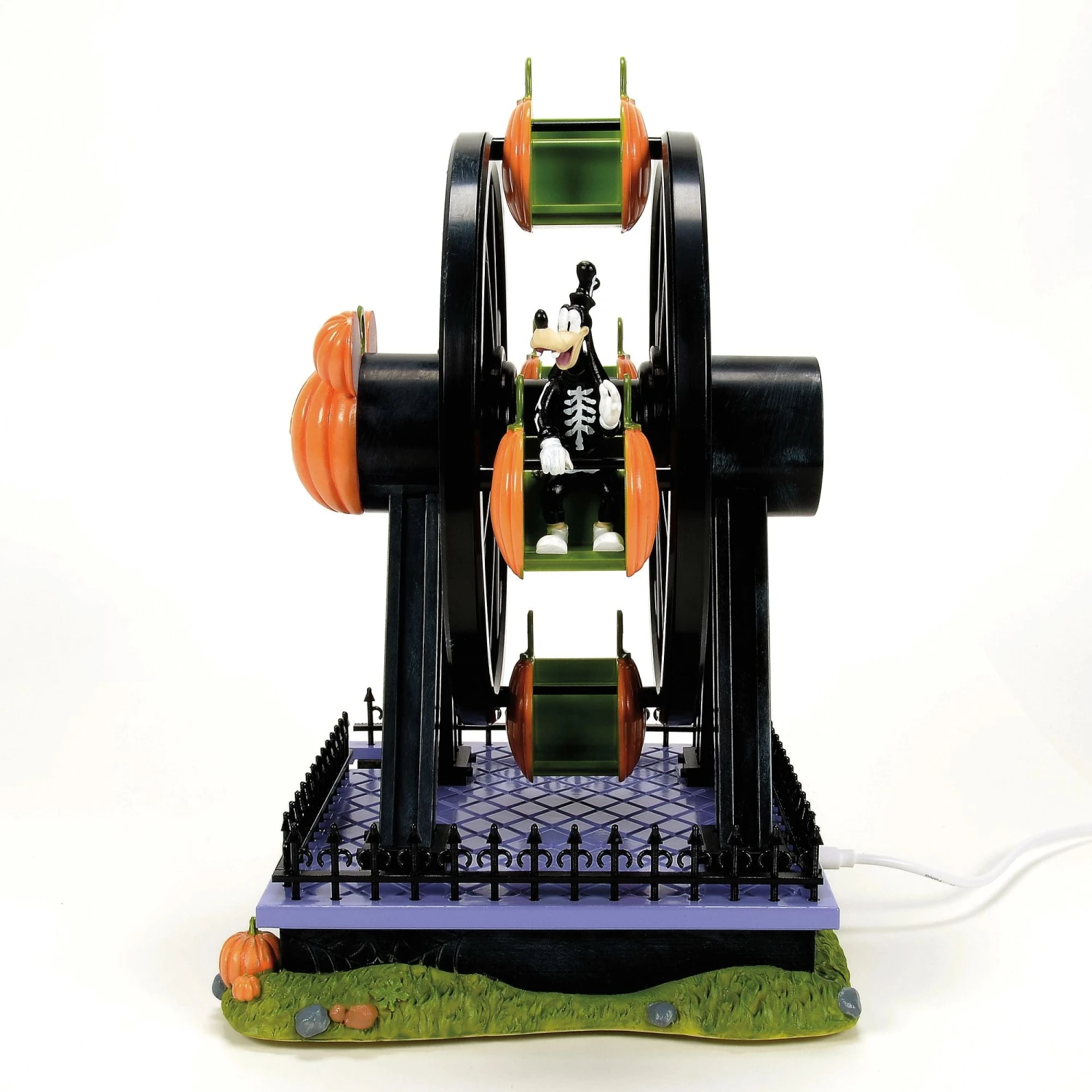 After his umpteenths ride, Goofy cannot remember if he was the first to get on or the last to get off, but he certainly knows the Pumpkintown Ferris Wheel is gawrsh darn fun! Animated with sound and lights!