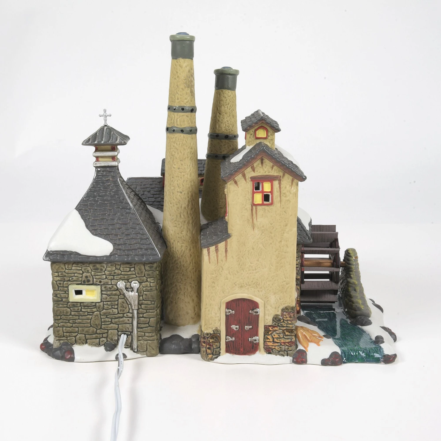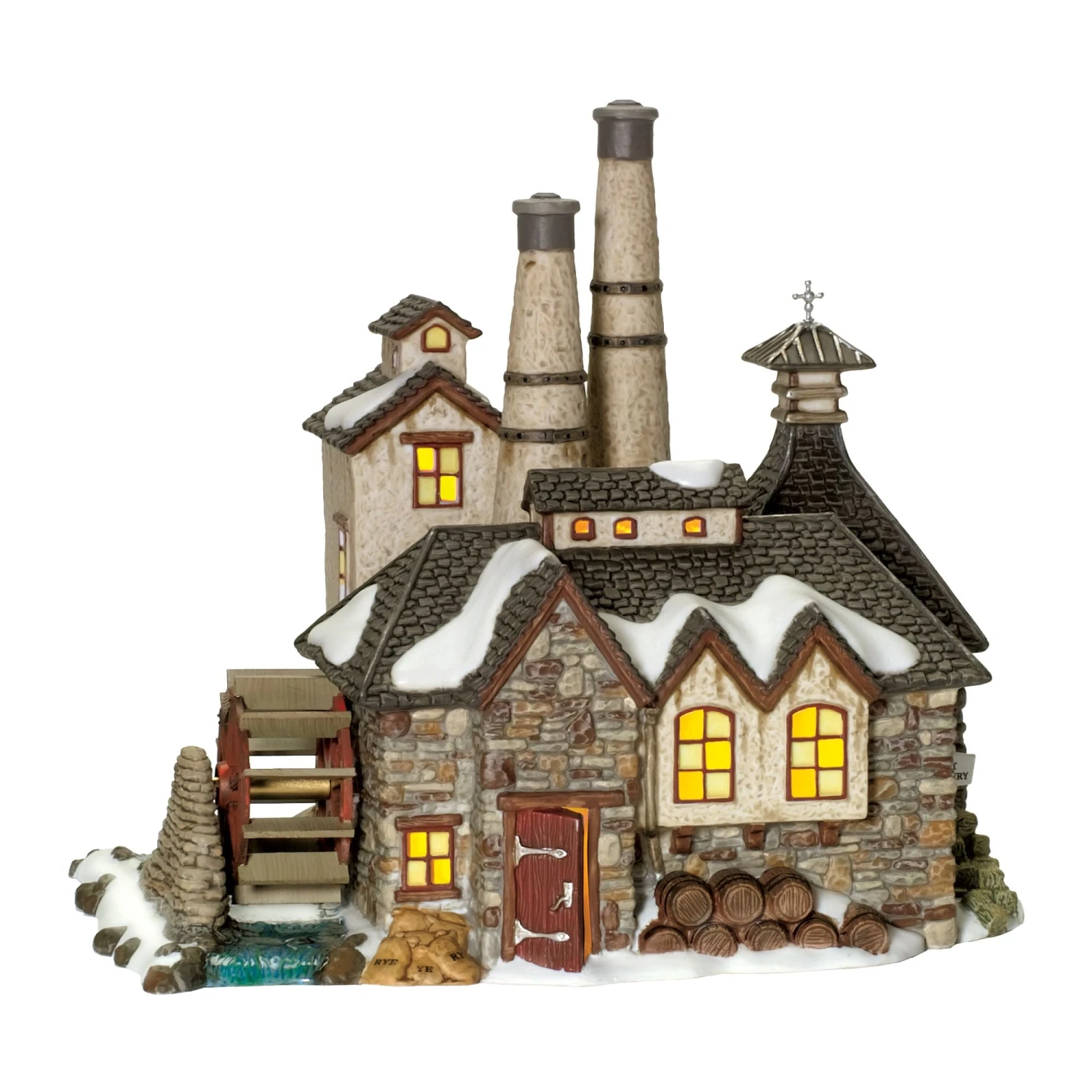 Designed to accompany Dickens Village by Department 56, the distillery features an animated water wheel used to power the machinery inside the Victorian era distillery. 8.75 x 6.5 x 7.5″