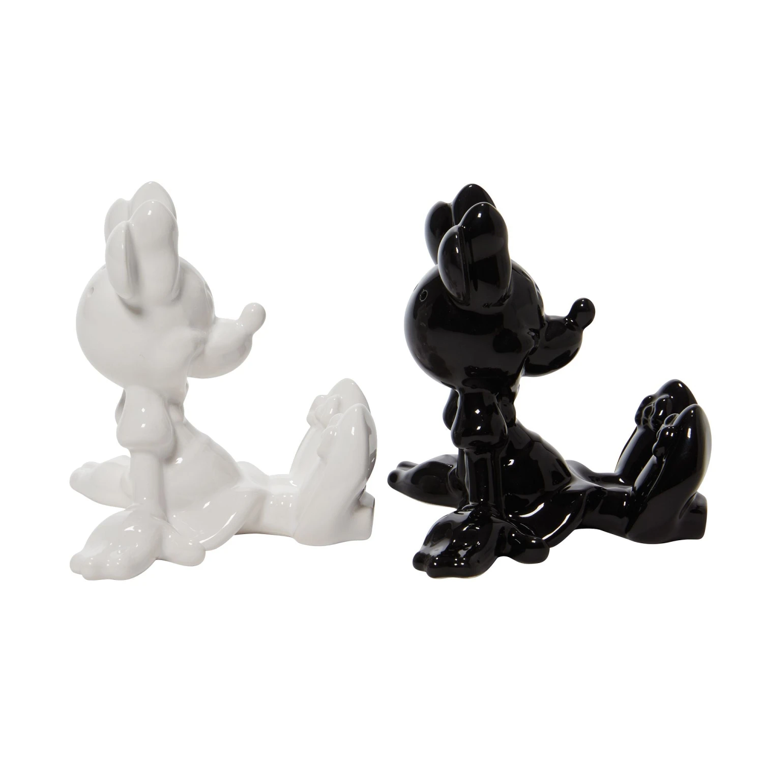 This modern Minnie Mouse ceramic salt and pepper shaker set in black and white will steal the scene at any well dressed table.