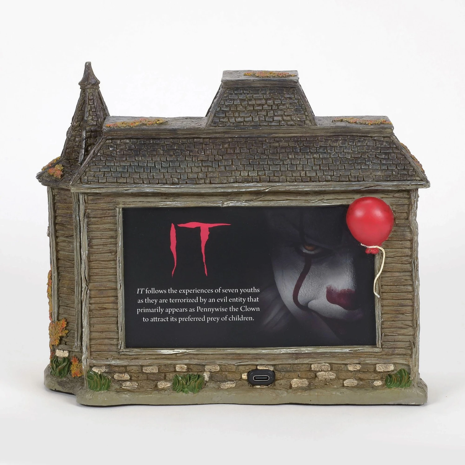 Relive the terror of the shape-shifting monster, Pennywise, and his dilapidated lair with our creepy, intricate tribute. Set of 2. Backside of the building has movie facts.