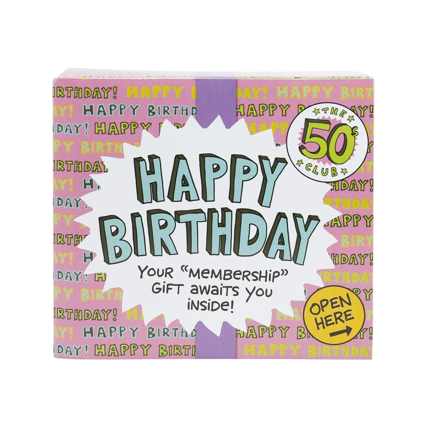 This colorful cup welcomes you to the fifties club! With a happy birthday message and some playful quips about what to expect in your fifties, this hilarious mug and card makes a memorable gift. Enjoy your free club membership for the next ten years!