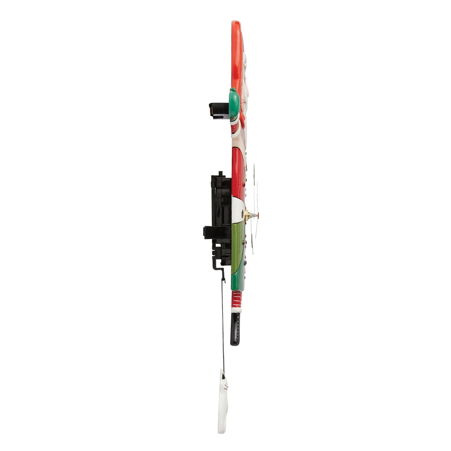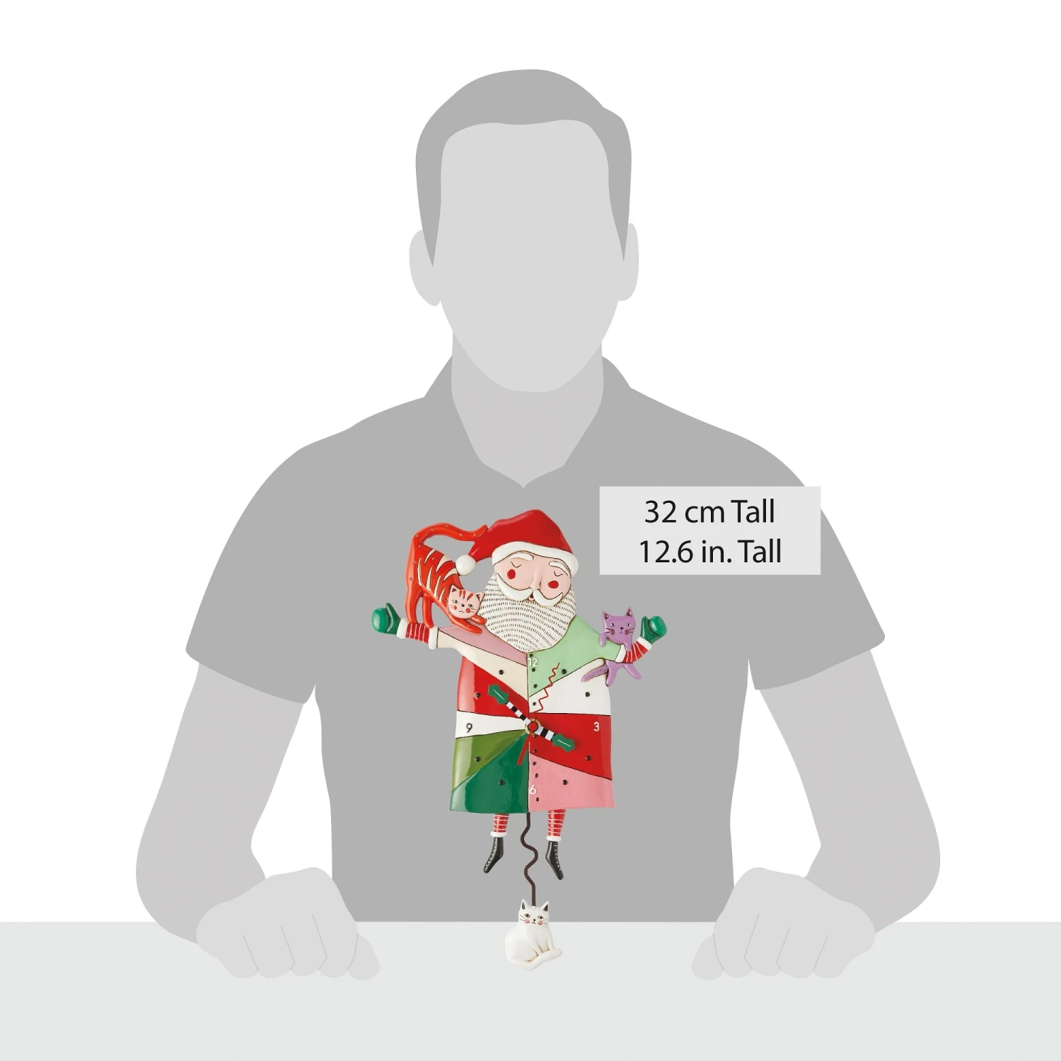 Santa sleeps soundly in colorful pajamas as holly leafed clock hands countdown the minutes until Christmas. Two chromatic cats cuddle beside Santa Claus as another acts as a swinging pendulum at his feet. Merry Catmas from Allen Designs!