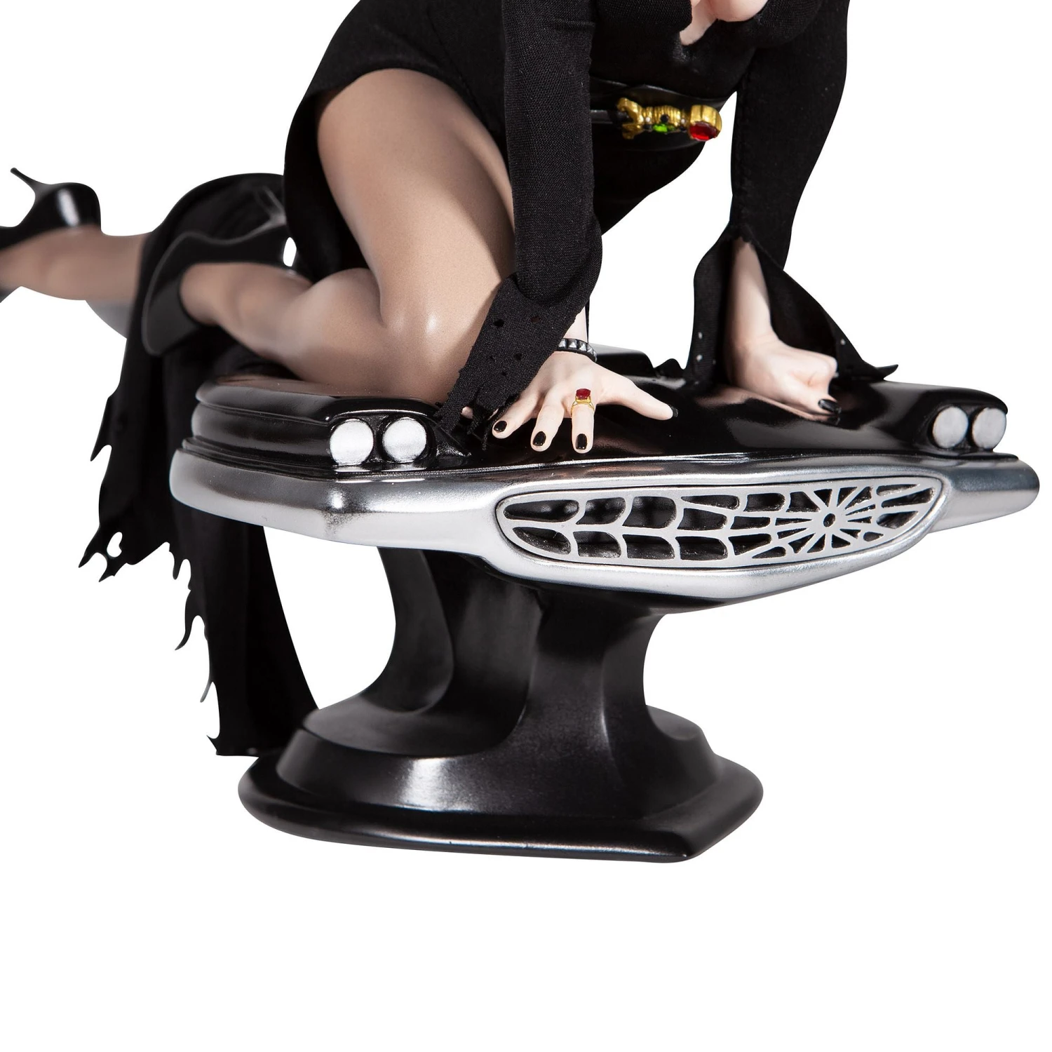Grand Jester Studios presents Elvira, Mistress of the Dark, in this 1/4 scale deluxe format statue. Inspired by Elvira’s Macabre Mobile hood ornament, Elvira comes to life in this mixed media sculpture. Numbered Limited Edition 2,500 World wide.