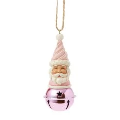This delightful Jim Shore Heartwood Sweets jingle bell ornament features a charming miniature bust of Santa, complete with a pastel pink icing hat and rosy cheeks that exude holiday cheer. Ring in the season with Jim Shore!