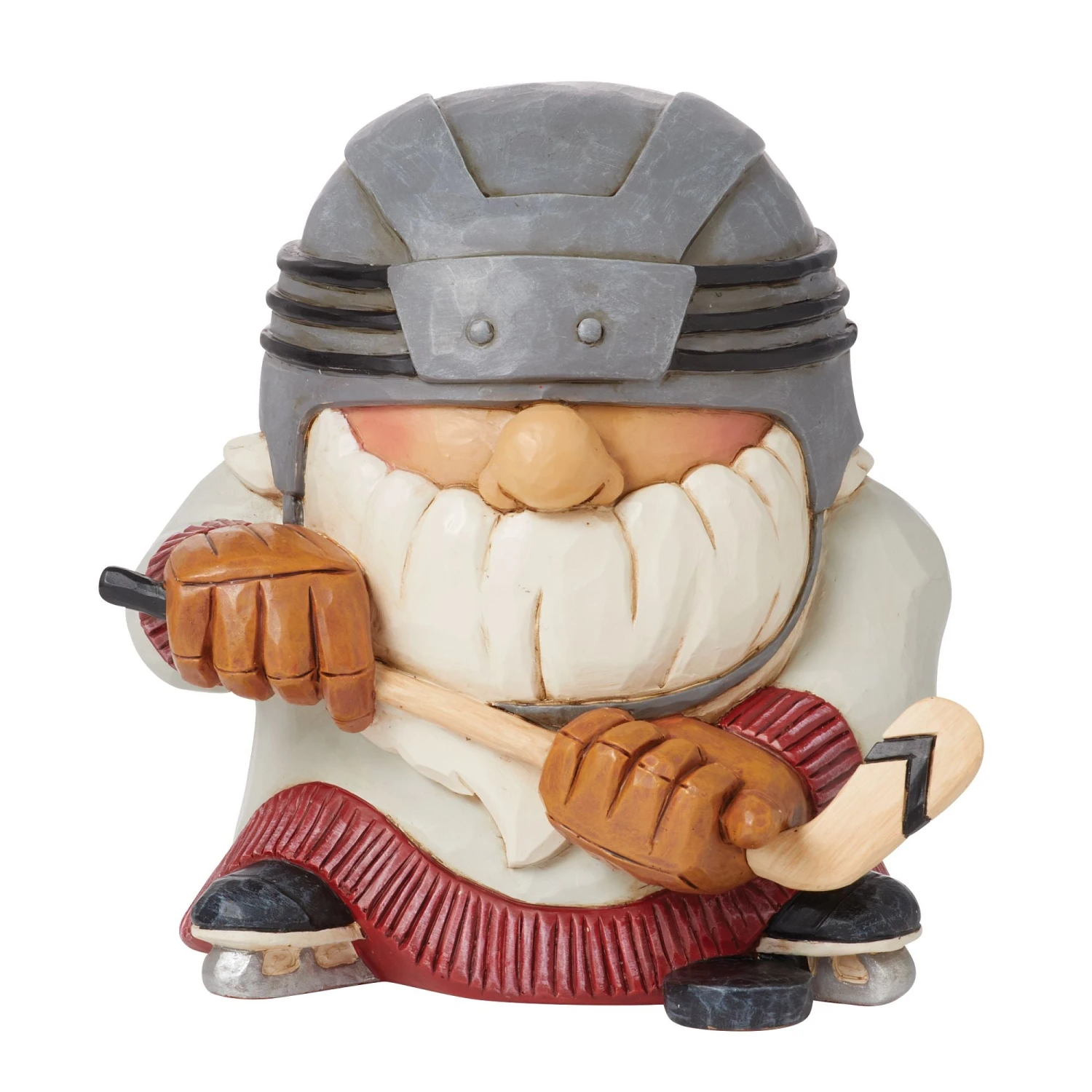This playful collectible from Jim Shore honors the love of sports! This hockey player wears a decorated cap and ice skates. Holding a hockey stick with skill, he gets ready to shred. Celebrate your passion for the rink with this charming piece!