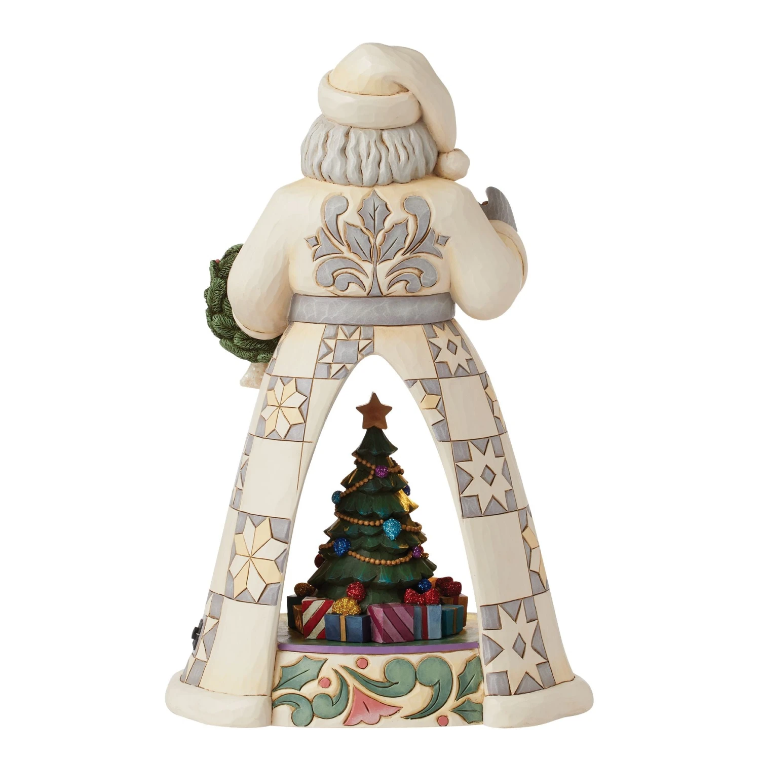 With a cleverly designed Santa and added featured Christmas tree, this charming LED light up diorama Santa captures the magic of Christmas. Dressed in a beautiful coat, Santa holds a wreath and ornament.