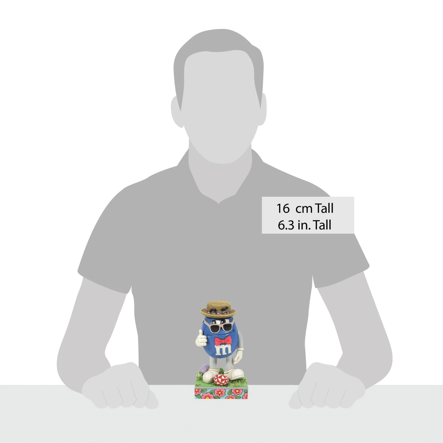Final design may vary. What could be a sweeter treat this Spring than an Easter inspired M&M’S Character scene by Jim Shore? Wearing a bowtie and straw hat, Blue shares a thumbs up as he enjoys the outdoors. On a stage of flowers and eggs he smiles cool.