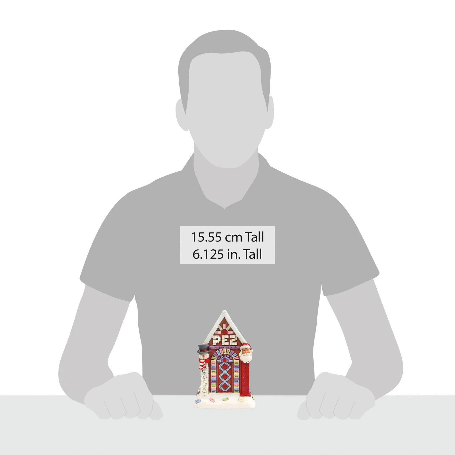 Inspired by the nostalgic PEZ candy, this playful gingerbread house by Jim Shore is covered in colorful treats. The entrance to the candy cottage is guarded by a Santa Claus and Snowman PEZ dispenser with a PEZ sign above the door. Final Design May Vary.