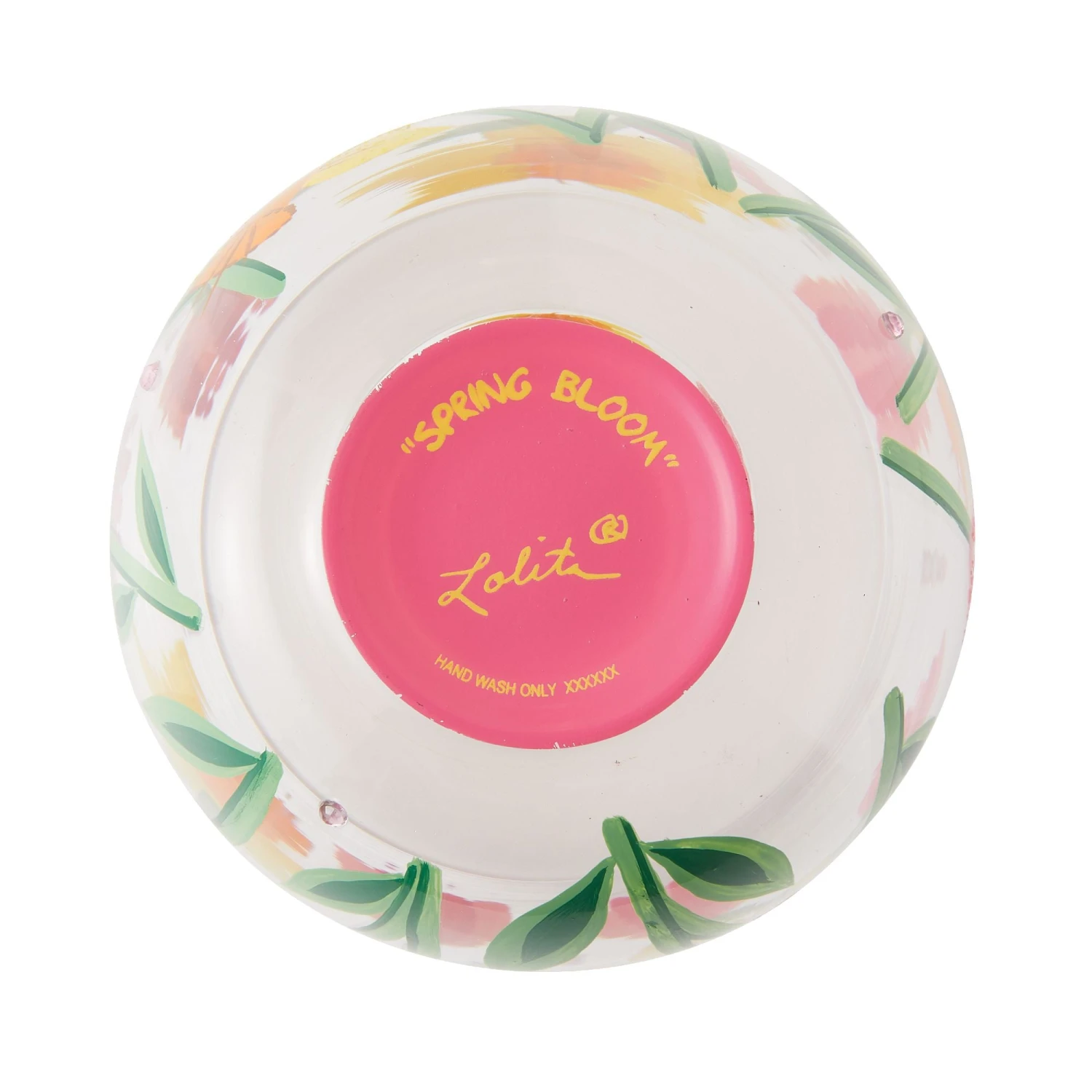 This spirited stemless wine glass from Lolita Designs inspires springtime sunshine with every sip. With glitter and refreshing color, the cup shares a scene of a garden in beautiful bloom. Pour yourself a glass and breathe in the flower power.