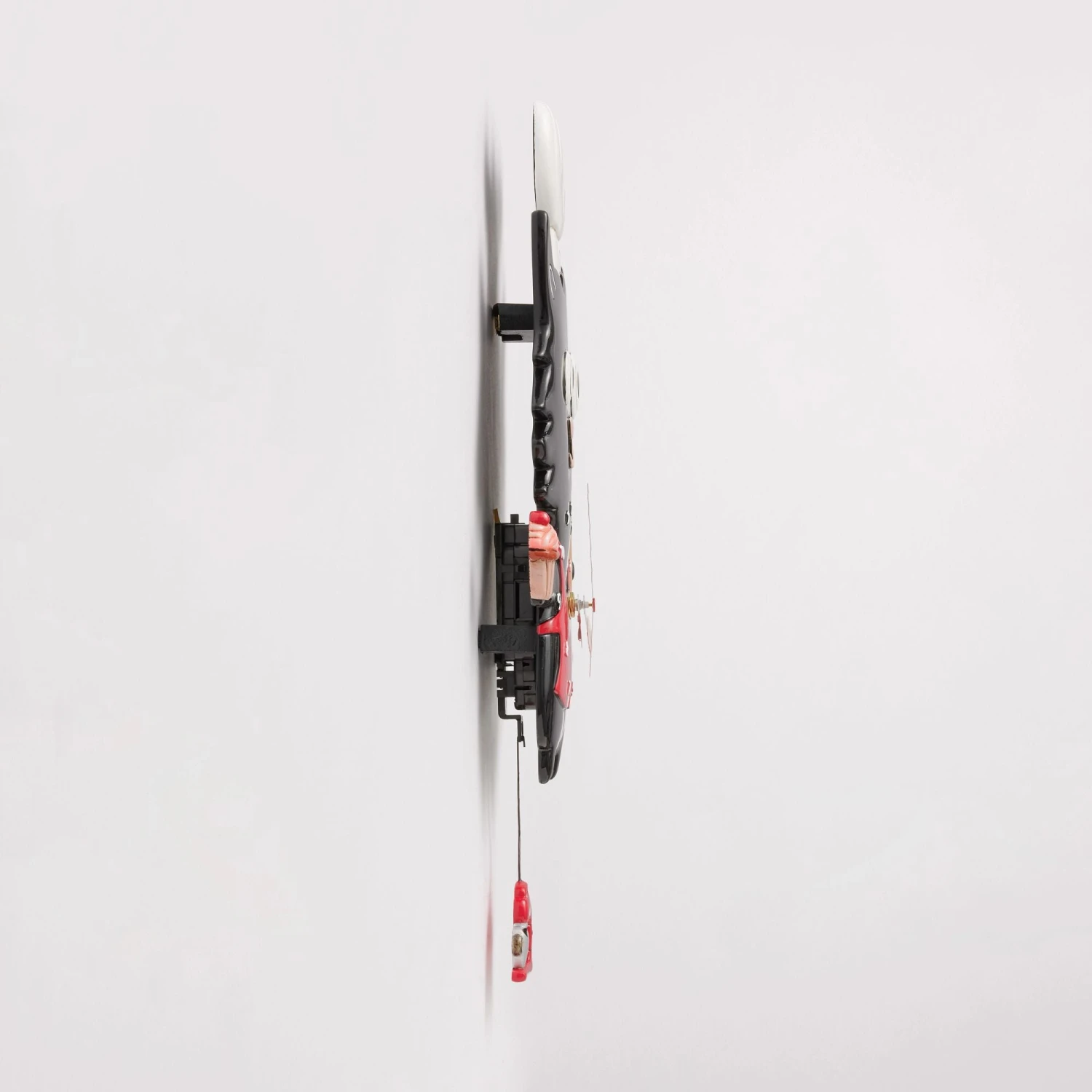 Add a dash of sugar and whimsy to your kitchen with this Allen Designs’ wall clock. The playful timepiece features a black cat in a red apron and chef’s hat, holding a cupcake and rolling pin with culinary care. A miniature mixer acts as a pendulum.