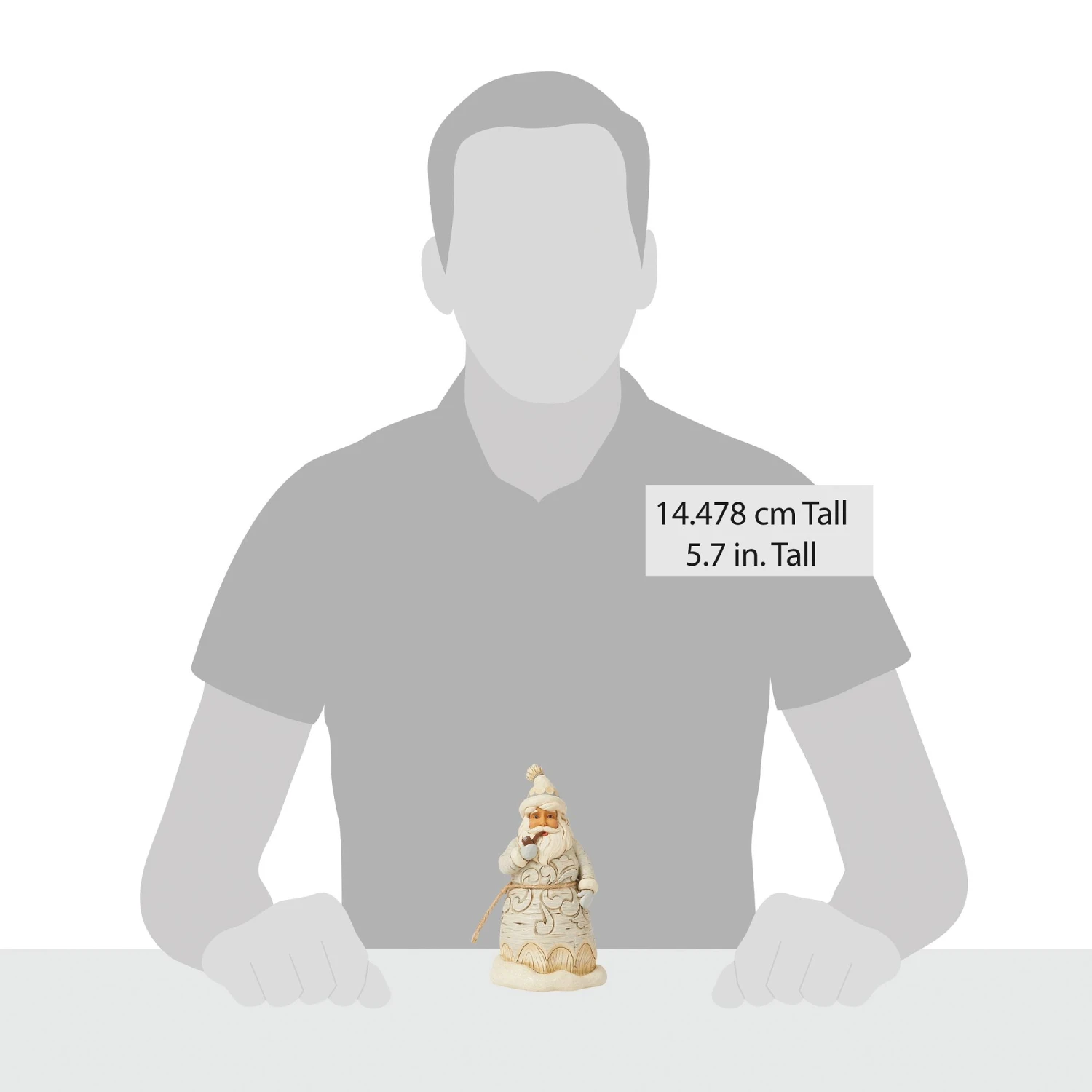 This small Santa figurine showcases Christmas in accented white rosemaling robe and hat. Smoking a pipe, this Santa brings additional warmth to your wintertime home decor. Celebrate the season with Jim Shore’s White Woodland collection.